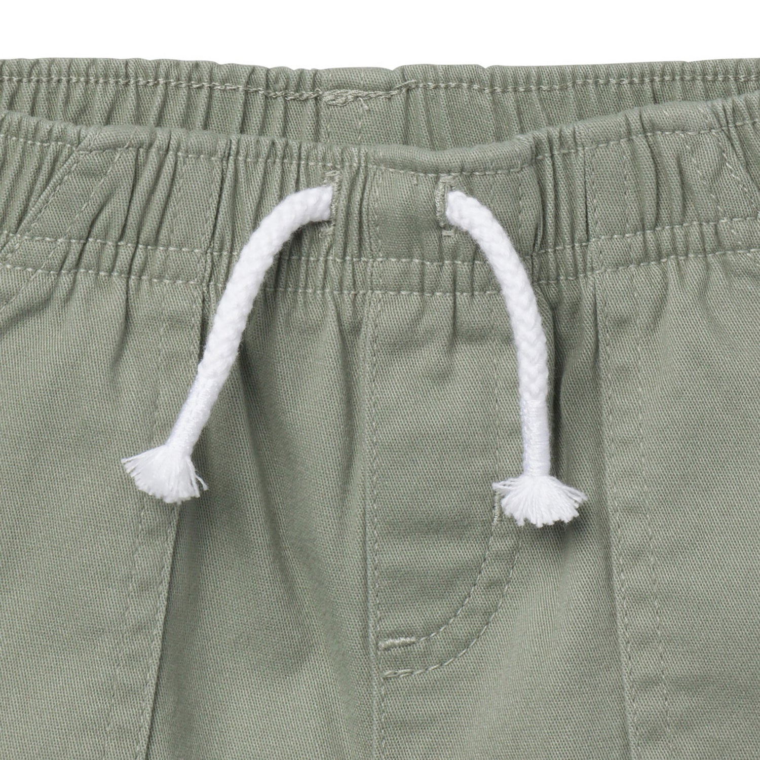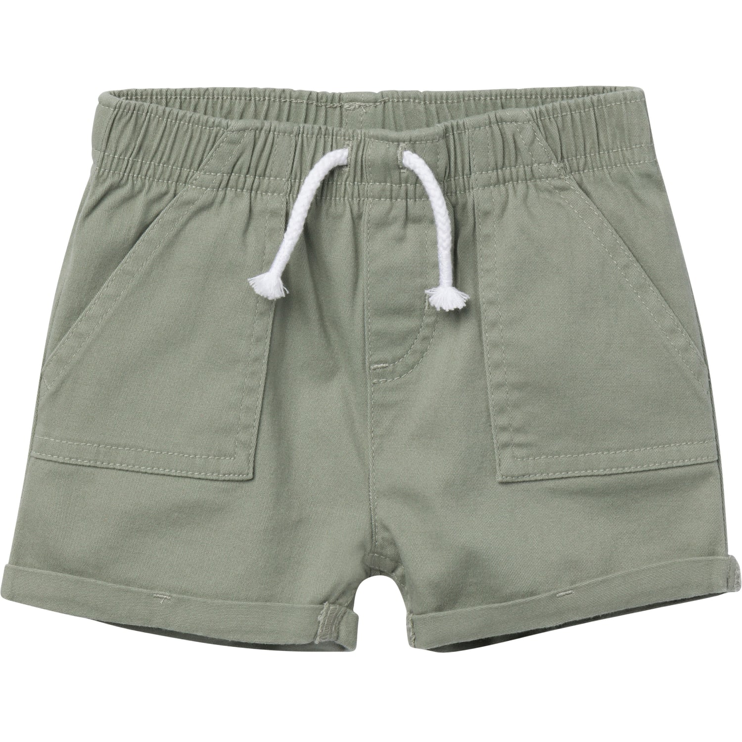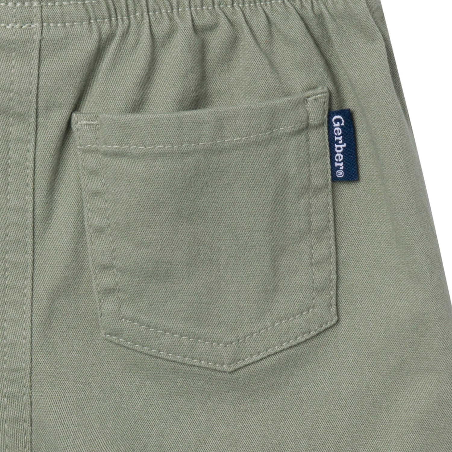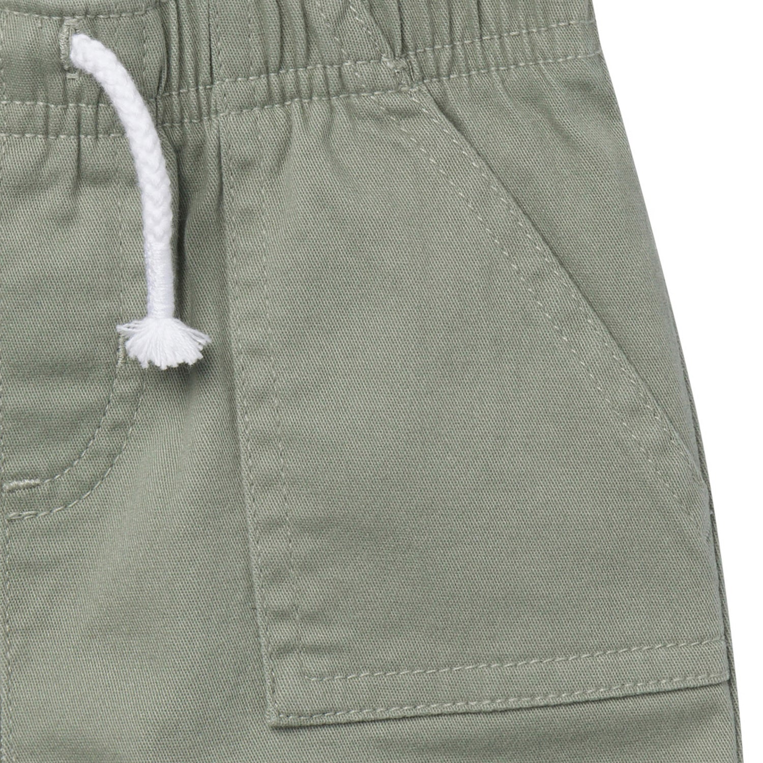 These adorable baby and toddler girl shorts are perfect for every sunny day adventure! Designed with soft, slightly stretchy fabric, they keep her comfy and moving with ease. The elastic back waistband offers a secure, easy fit, while functional pockets are perfect for keeping tiny treasures close by. The solid olive-green color and faux twill tape details add a stylish touch, making these shorts easy to pair with any t-shirt or bodysuit for a simple, cute outfit that’s ready for play. Our essentials have been independently certified with STANDARD 100 by OEKO-TEX® so that there's no worry about harmful substances in baby’s wardrobe. Includes one pack of baby or toddler girl shorts.