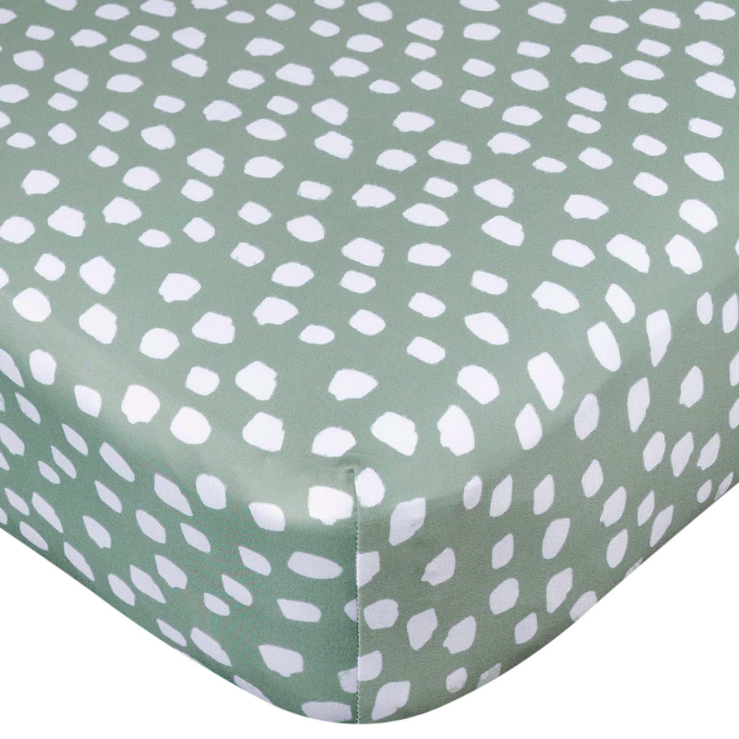 Our delightful 2-pack of knit crib sheets is tailored just for baby boy's nursery! Made from sturdy polyester and stretchy spandex jersey, they measure 52” x 28” for a snug fit on standard crib mattresses. One sheet showcases playful dinosaurs, while the other offers calming green with white dots. Elevate nursery with both style and comfort for little one's peaceful sleep. Our essentials have been independently certified with STANDARD 100 by OEKO-TEX® so that parents don’t have to worry about harmful substances. This pack includes two knit crib sheets.
