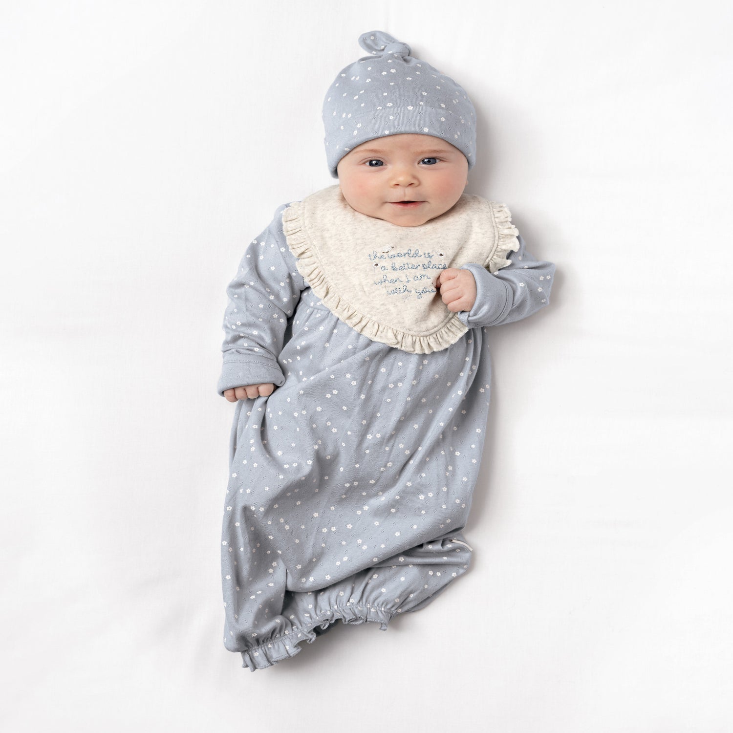 Our gown sets are the perfect outfits for newborns. Each piece is made with cotton with organic fibers, so it’s gentle on the planet & the little one’s skin. We had this product independently certified with STANDARD 100 by OEKO-TEX® so that there's no worry about harmful substances in baby’s essentials. With easy-to-change features and easy-care fabric, parents will love the convenience of our gowns as much as your baby loves the comfort. Each piece is machine washable and dryable. Makes a great baby shower gift!