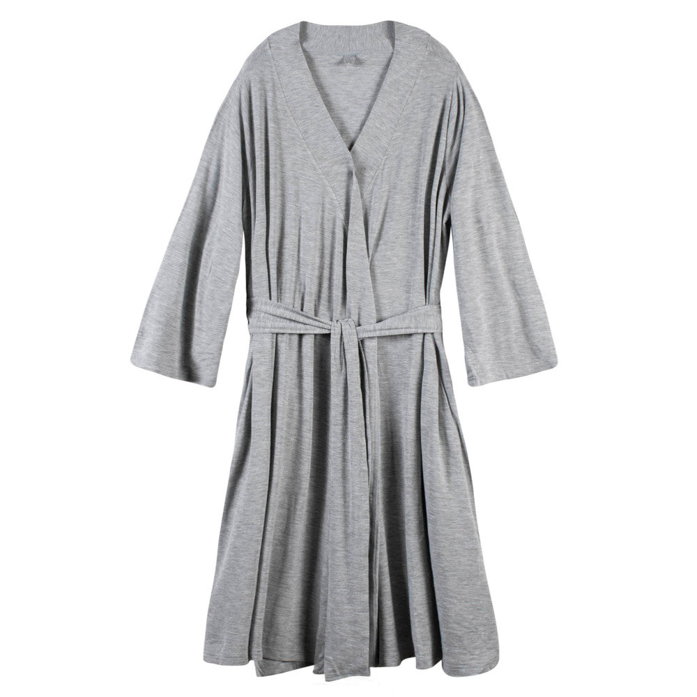 Each one of our robes and swaddle blankets are made with a super soft viscose blended jersey, a gentle and easy-care fabric that’s perfect for newborns and babies. We had our essentials independently certified with STANDARD 100 by OEKO-TEX® so that there's no worry about harmful substances in baby’s clothing. Designed with features that keep life easy, each swaddle blanket is sized at 44” x 44” to allow for quick and simple swaddling. This set includes one gray robe and one swaddle blanket.