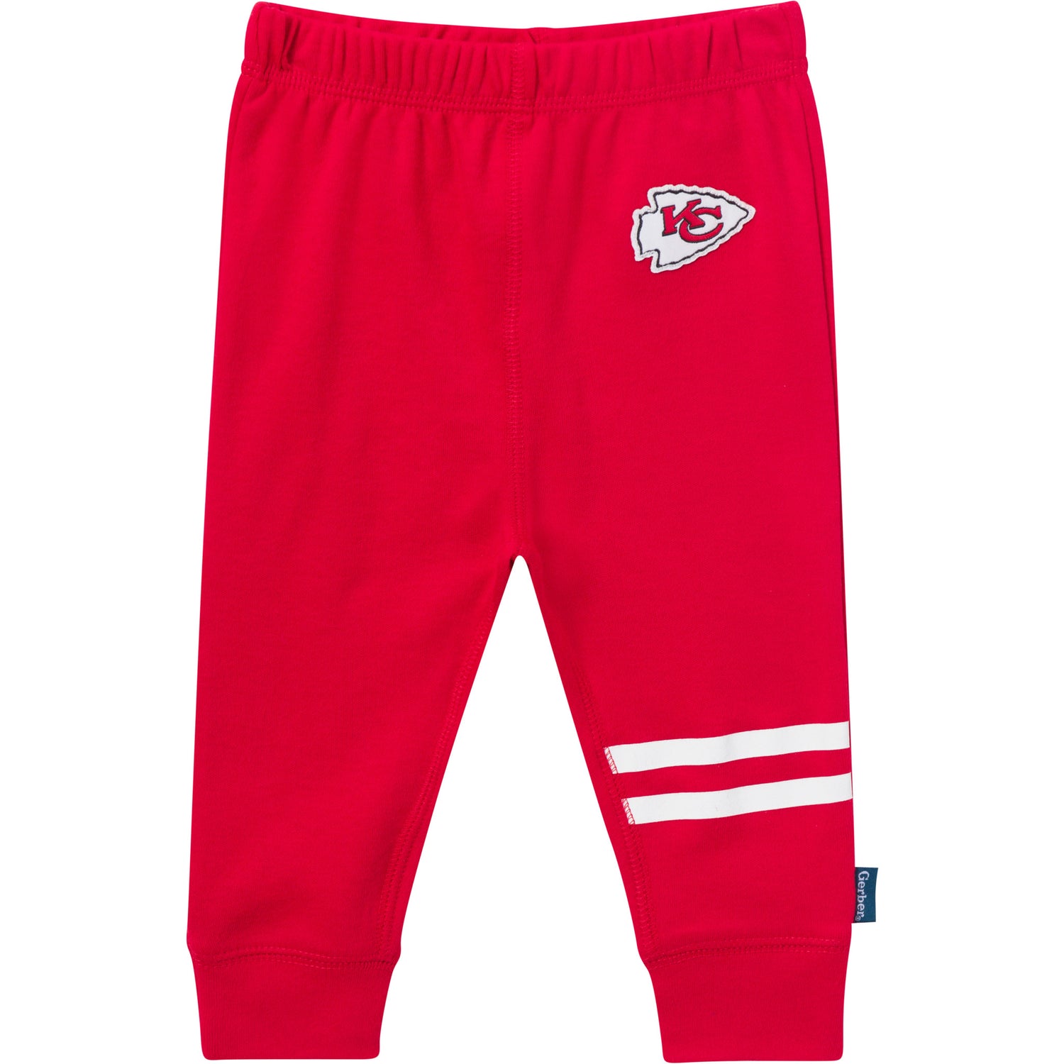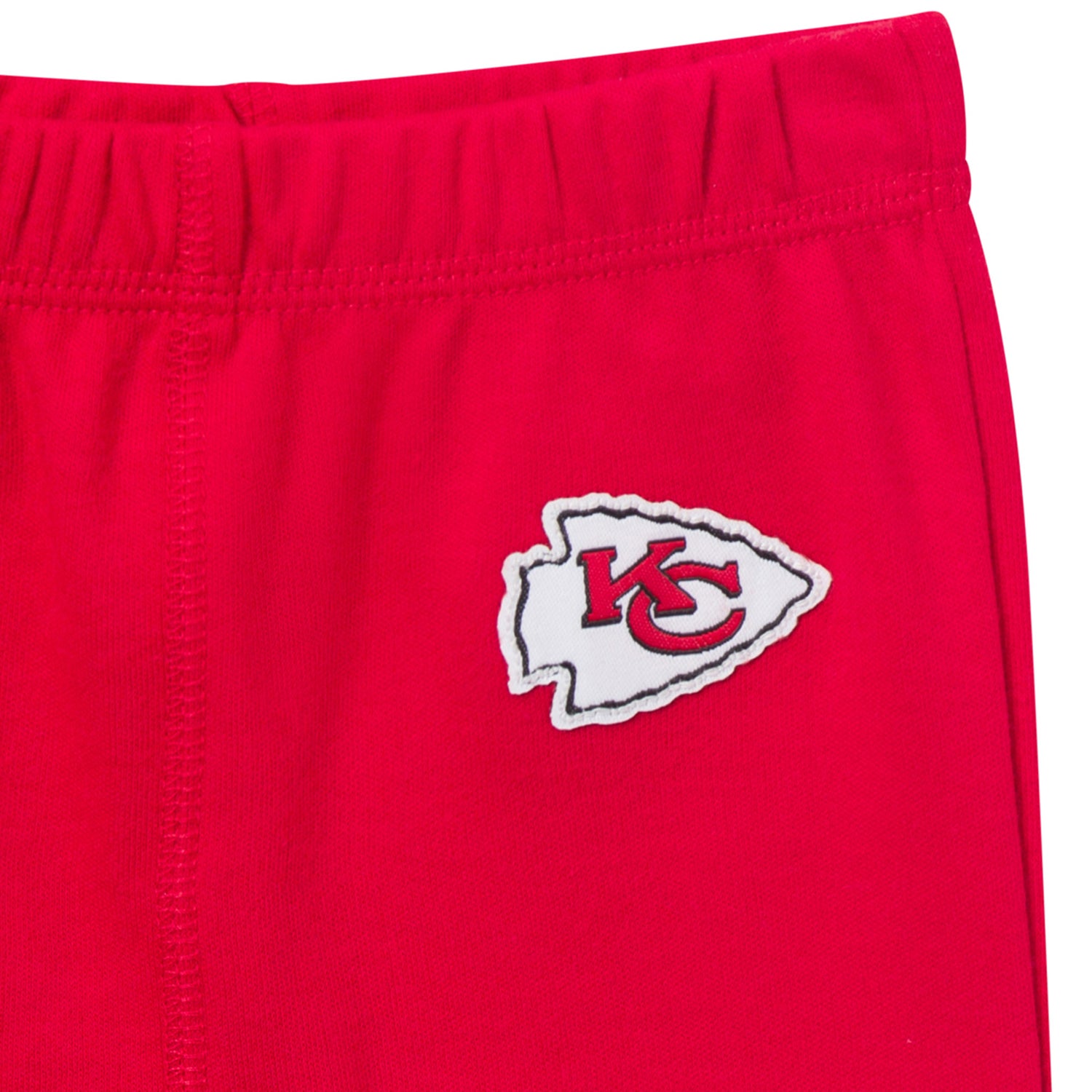 This Kansas City Chiefs 3-piece infant set featuring a soft bodysuit, cozy pull-on pants, and a knit cap. The bodysuit includes lap shoulders and bottom snaps for easy changes, while ribbed trim ensures a comfy fit. Coordinated pants and cap complete the look in bold team colors. STANDARD 100 by OEKO-TEX® certified. Includes three pieces.