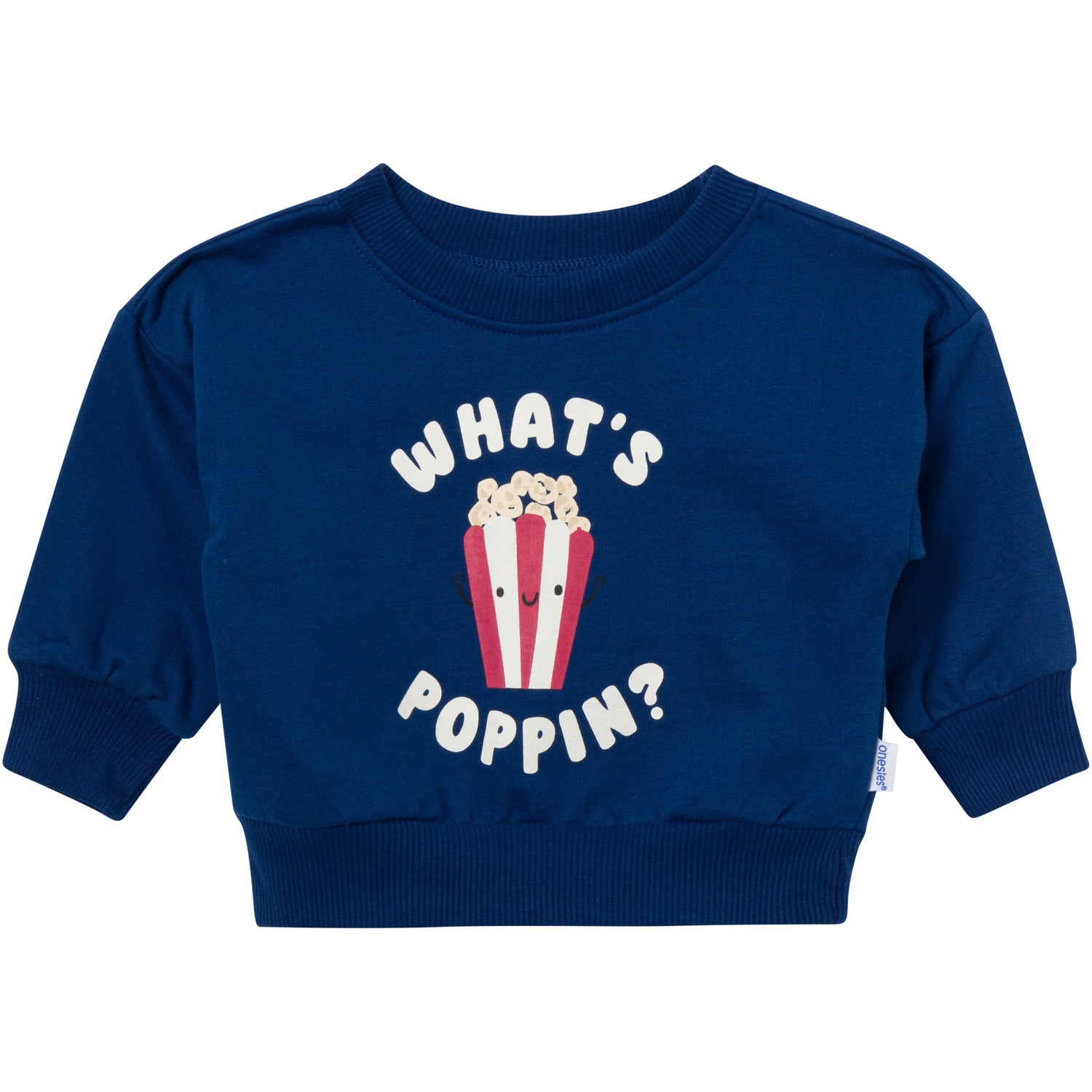 Pop into playtime with our “What’s Poppin’” baby boy set, made from soft and cozy material that’s perfect for keeping the little one warm on chilly days! The drop shoulder sweatshirt features a playful popcorn graphic and a loose, layer-friendly fit, while flexible ribbing at the neckline, wrists, hem, waistband, and ankles keeps everything snug and comfy for all-day movement. Our essentials have been independently certified with STANDARD 100 by OEKO-TEX® so that there's no worry about harmful substances in baby’s wardrobe. Includes baby boy sweatshirt and pants set.