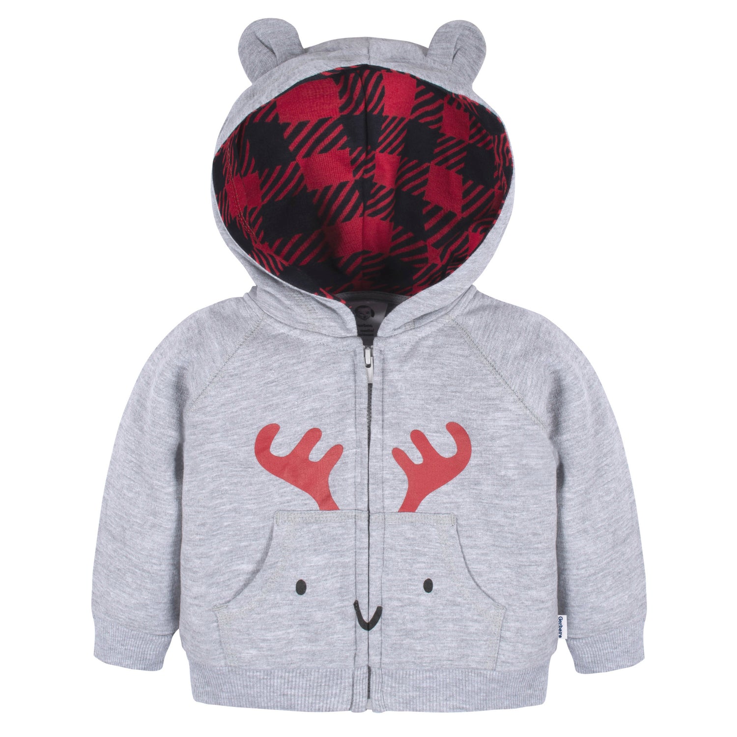 A great fall or winter outfit for baby boys, this matching set is a cozy and adorable outfit. The hoodie fits neatly over included t-shirt and has ribbed sleeves and wist for comfort and warmth. With a simple pull up style and gentle stretch at the waist for a snug fit, the pants are comfortable all day long. Tiny ears on the hoodie complement a screenprint moose on the hoodie pocket to complete an adorable look. Our essentials have been independently certified with STANDARD 100 by OEKO-TEX® so that there's no worry about harmful substances in baby’s wardrobe. Includes one hoodie and t-shirt with matching pants.