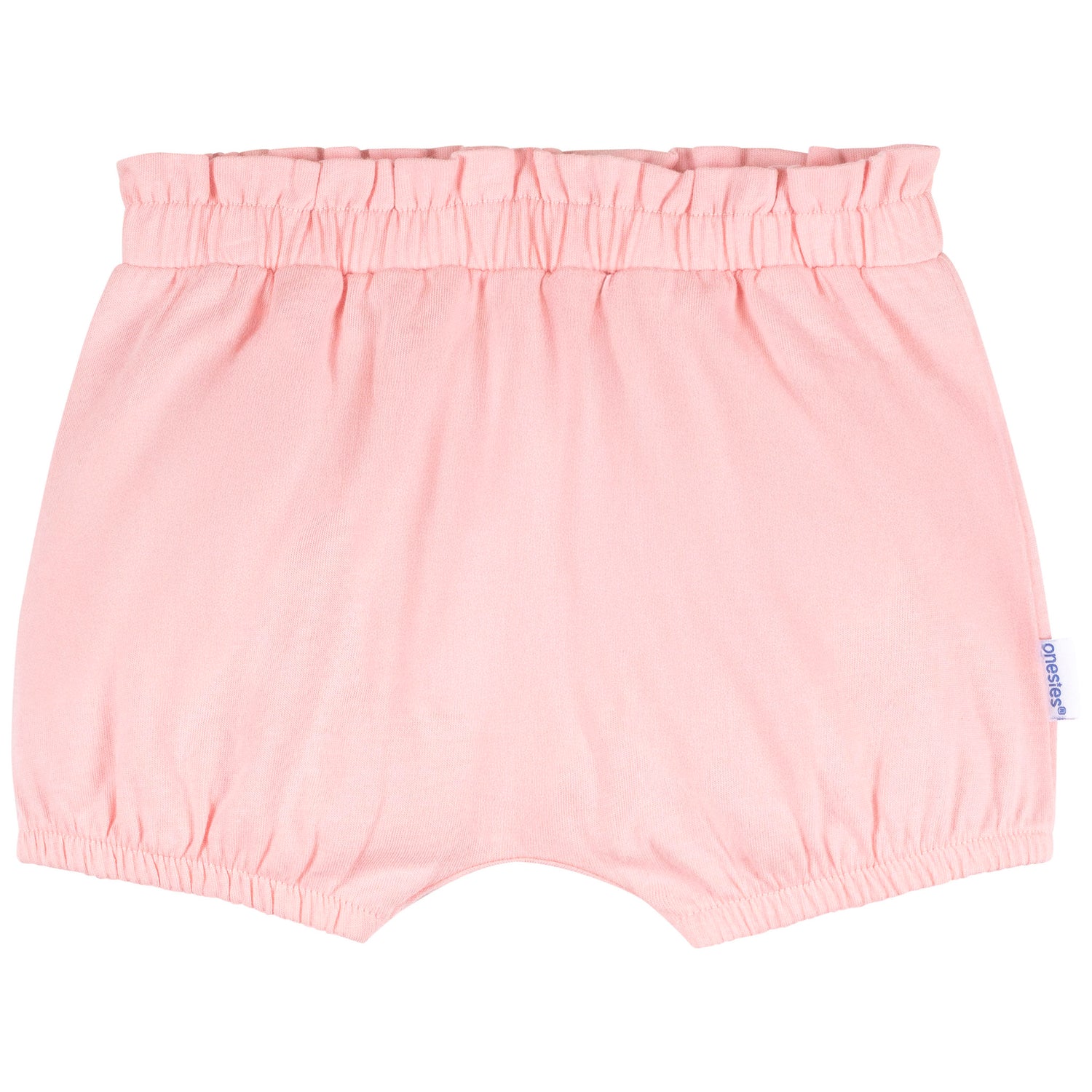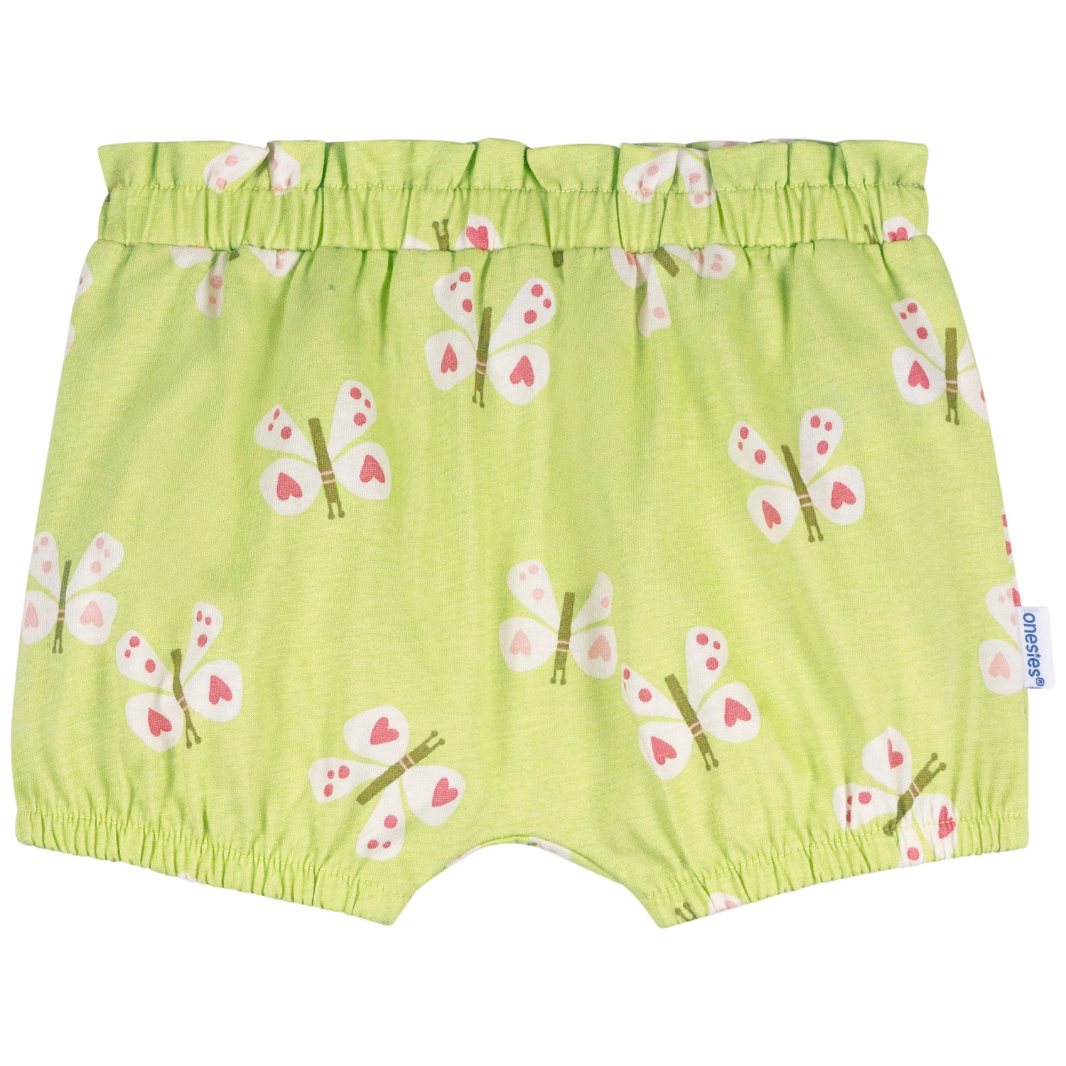 These baby girl bubble shorts are made from 100% cotton, giving the little one's sensitive skin the soft, breathable comfort it deserves. The comfort-stretch waistband and leg openings make getting dressed a breeze — and keeping them comfy even easier! With adorable ruffle details at the waist and a playful bubble fit, these shorts are a must-have for sunny days and sweet memories. Available in charming green with white butterflies and solids in dark pink and light pink, they're perfect for fast, fuss-free outfit magic! Our essentials have been independently certified with STANDARD 100 by OEKO-TEX® so that there's no worry about harmful substances in baby’s wardrobe. Includes three bubble shorts.