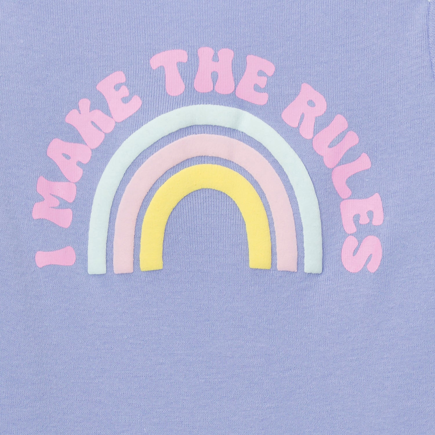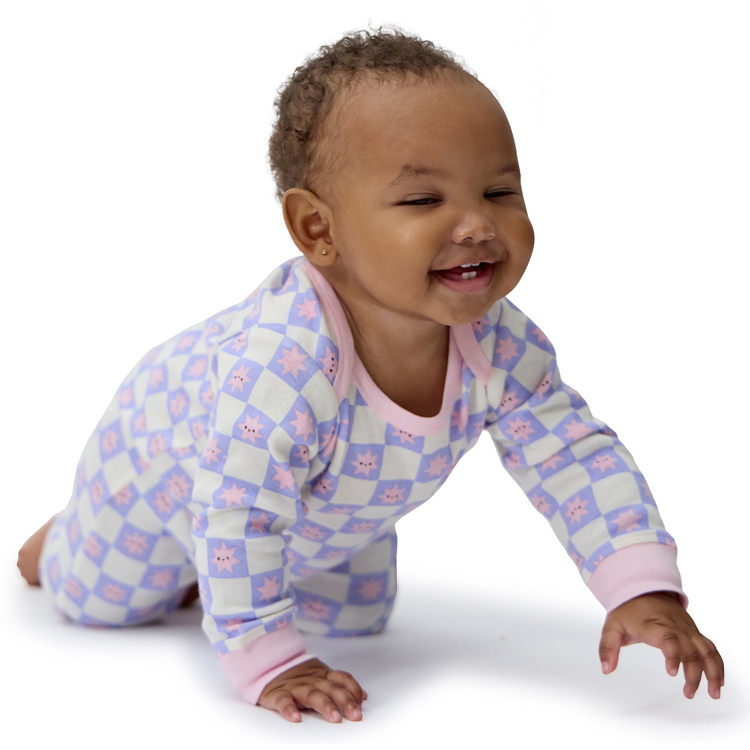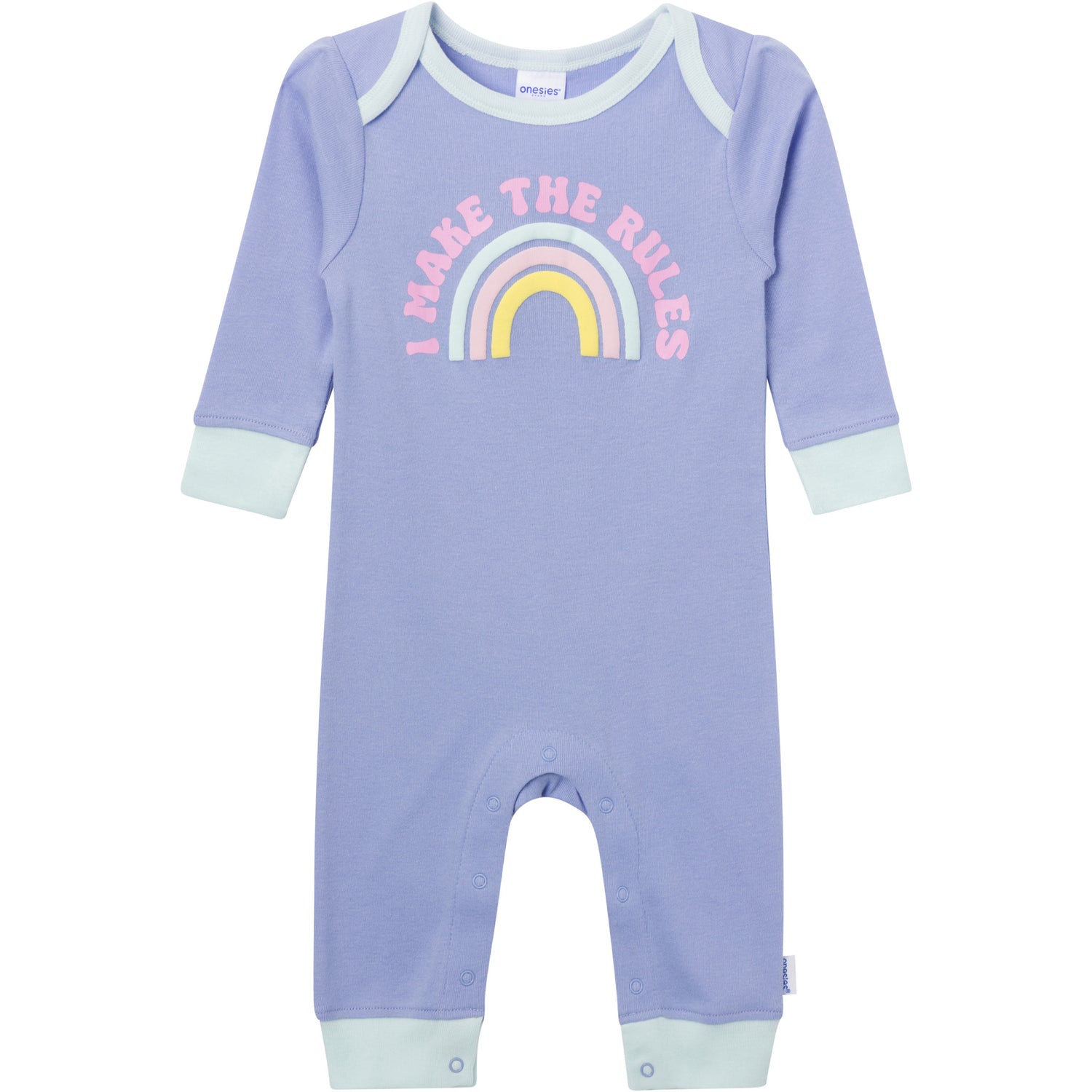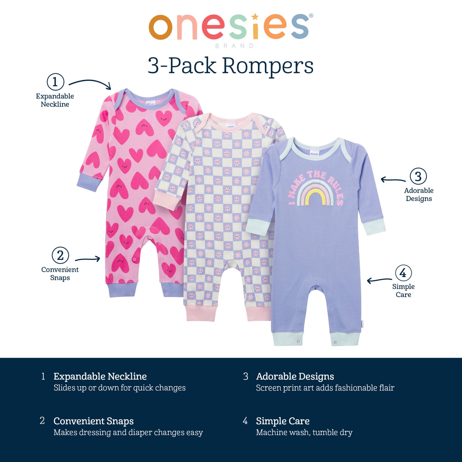 Let her personality shine in these footless pajamas! Featuring bold hearts, a checkerboard flower print, and a sweet rainbow graphic with “I Make the Rules,” this 3-pack is packed with playful flair. Made from 100% cotton to keep her comfy and cozy, these pajamas are gentle on delicate skin. Lap shoulders and leg snaps make changes quick and easy, and cinched cuffs keep the fit just right through every wiggle and cuddle. Our essentials have been independently certified with STANDARD 100 by OEKO-TEX® so that there's no worry about harmful substances in baby’s wardrobe. Includes three footless pajamas.