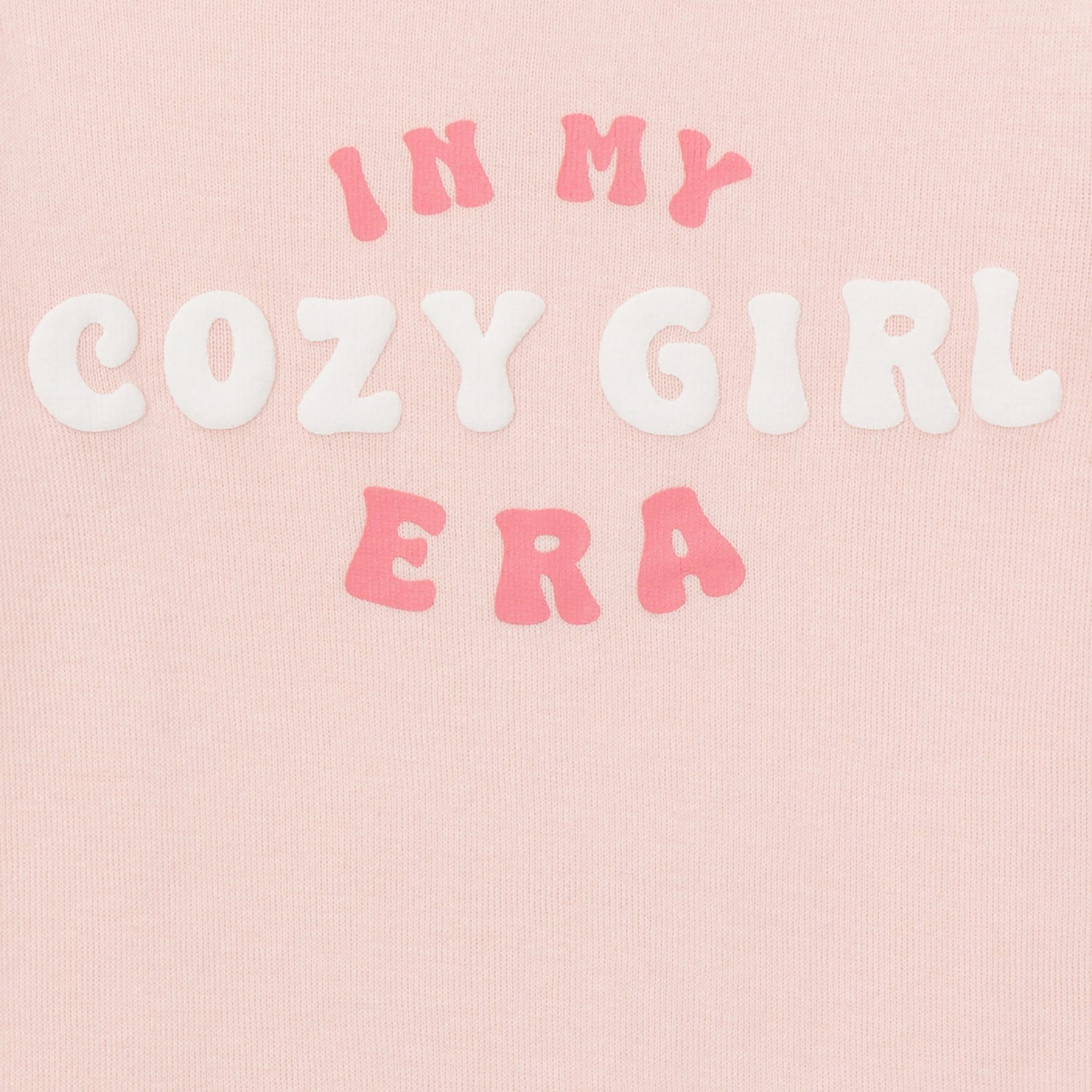 - Text reading "In My Cozy Girl Era" and print with stars and hearts