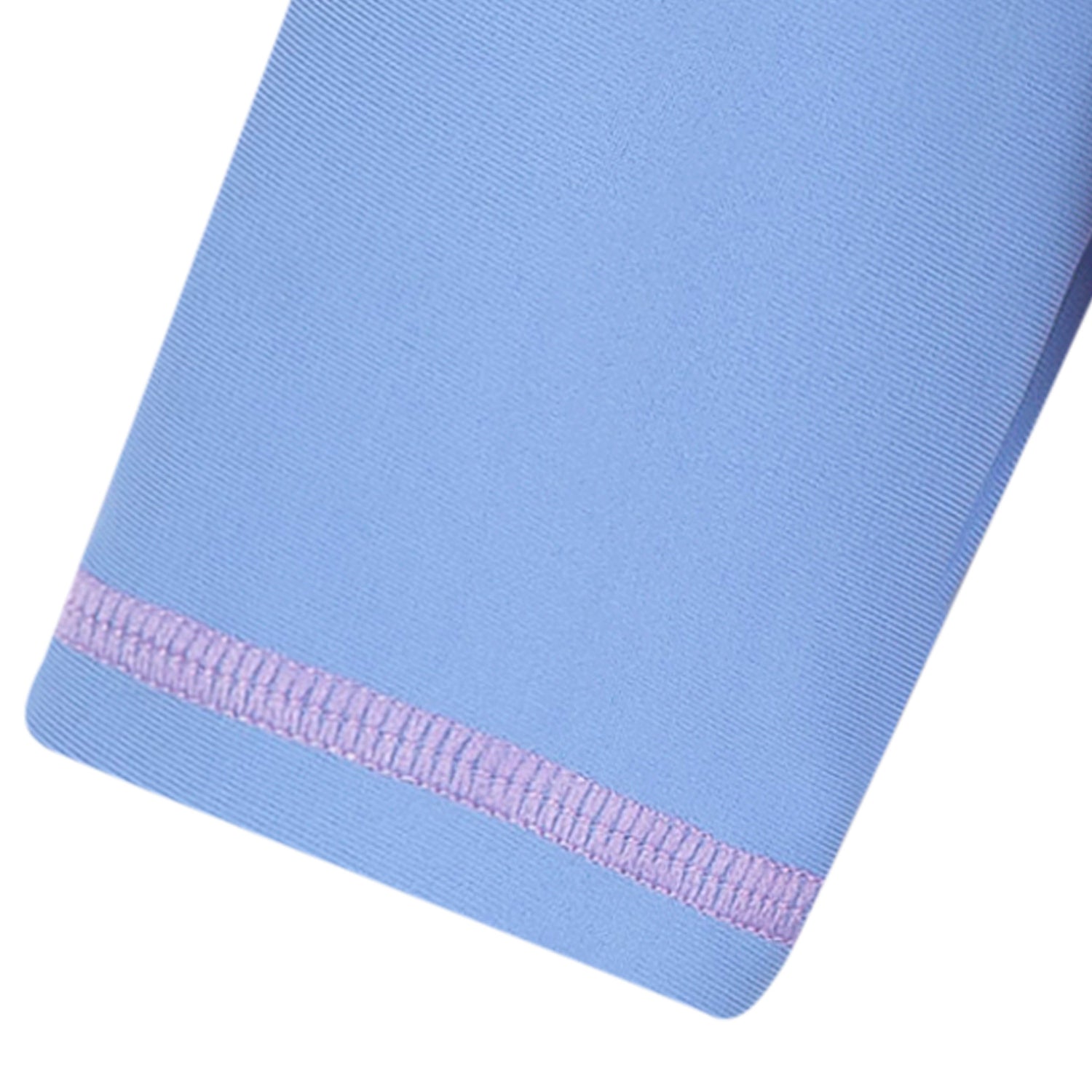 Made for sunshine and splashy fun, this baby and toddler girl rashguard offers comfort, durability, and everyday protection. Crafted from UPF 50+ fabric to help guard delicate skin from harmful rays, it features quick-dry, water-wicking material to keep her feeling cool all day long. The lavender body with blue sleeves creates a cheerful color combo, while a bold star graphic and the phrase “Waves Rays and Beach Days” add a playful finishing touch. Built for repeat wear and easy to pair with a wide variety of swim bottoms, this piece is ready for all her warm-weather adventures. Our essentials have been independently certified with STANDARD 100 by OEKO-TEX® so that there's no worry about harmful substances in little one’s wardrobe.