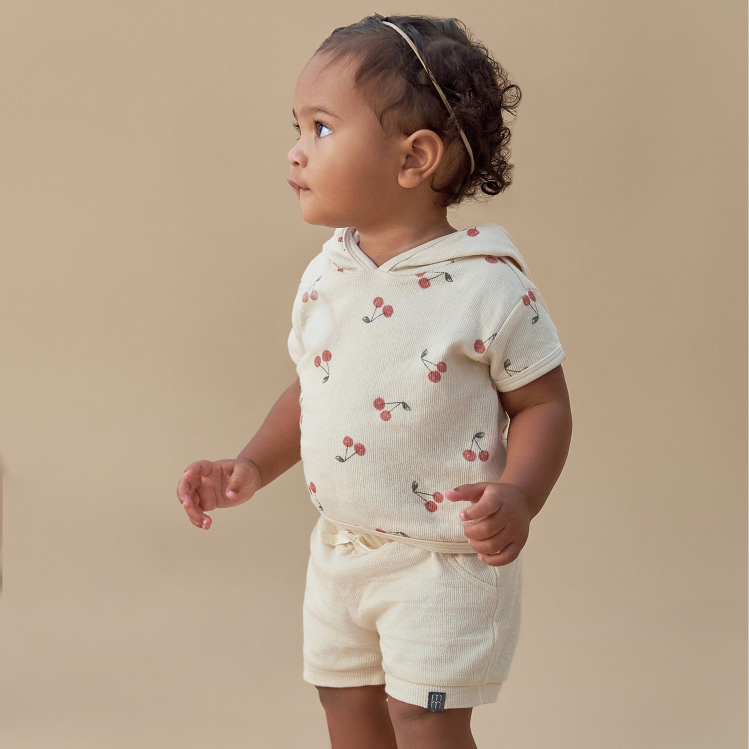 Baby Boys Beige Cherries Short Sleeve Hooded Top