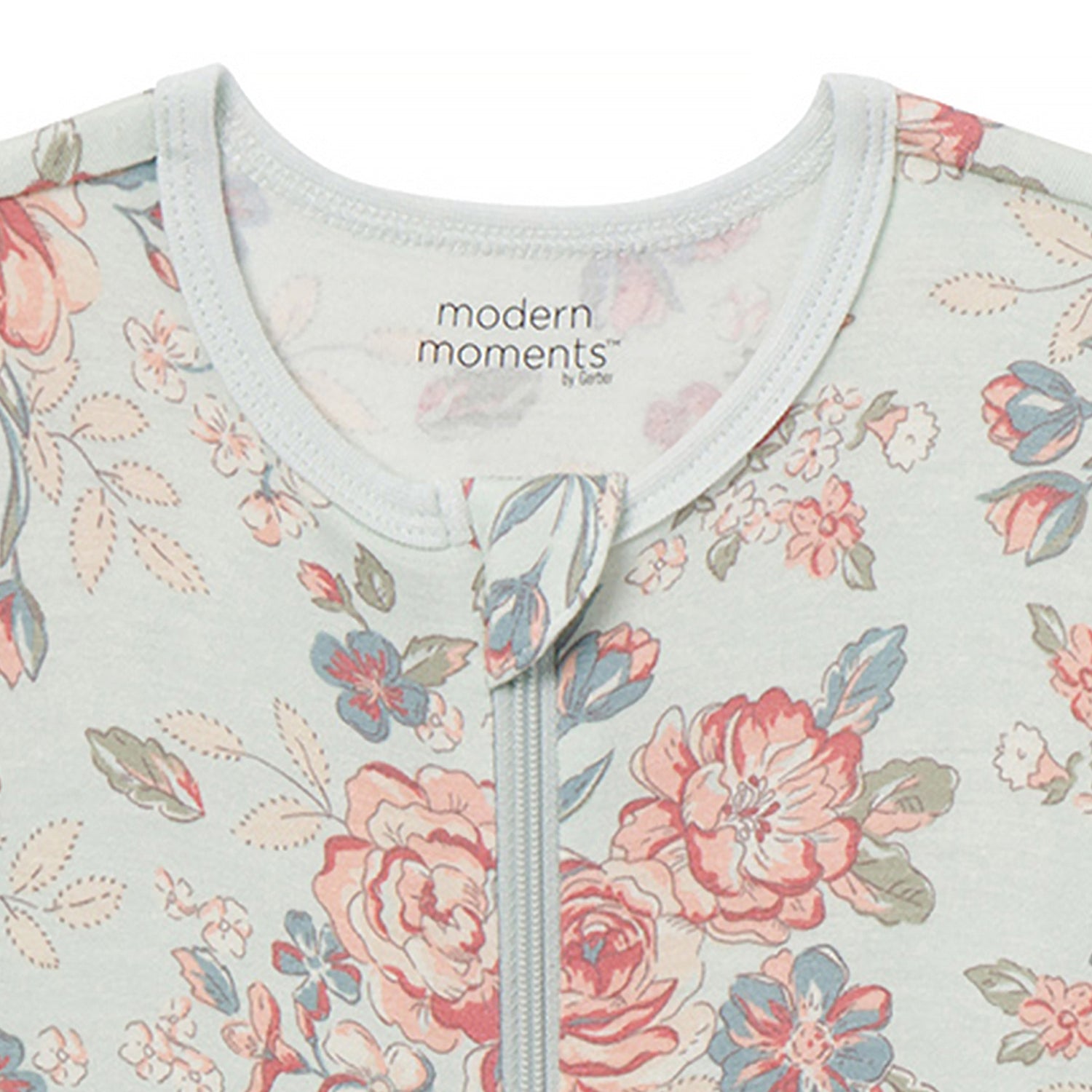 This charming Sleep 'N Play from modern moments™ by Gerber® is designed with both comfort and style in mind. Made primarily from super soft viscose with a hint of spandex for a gentle stretch, it offers an ultra-cozy fit that’s perfect for all-day snuggles. The full-length zipper with a protective neckline guard makes dressing and diaper changes effortless, while the footed design ensures extra warmth from head to toe. Integrated mitten cuffs add an extra layer of coziness and keep little hands safely covered. Thoughtfully crafted for both comfort and convenience, this sleep 'n play is a must-have for baby’s wardrobe. Our essentials have been independently certified with STANDARD 100 by OEKO-TEX® so that there's no worry about harmful substances in baby’s wardrobe. Includes one Sleep 'N Play.