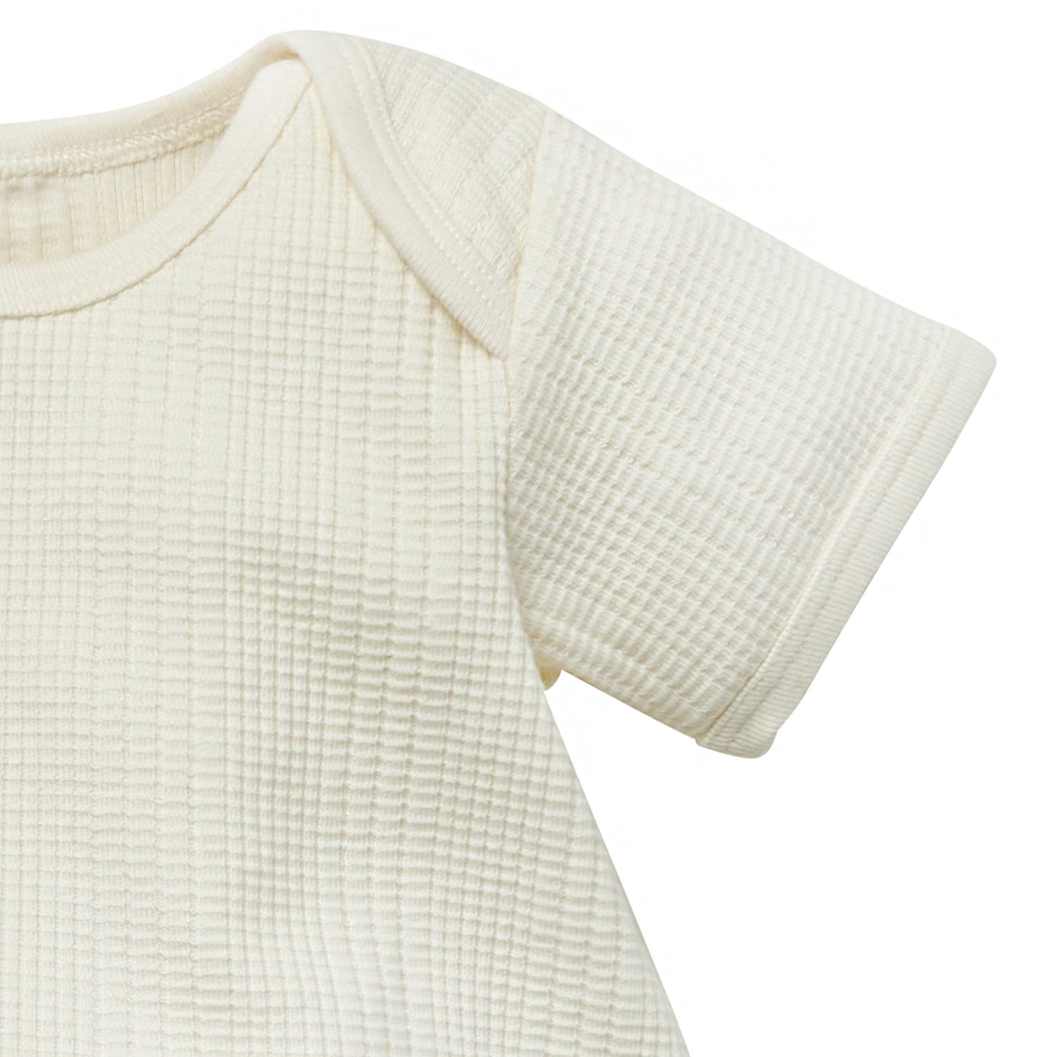 This baby romper is the perfect one-and-done outfit for all-day comfort, or it can be paired with matching shorts for a cute look! Made primarily from organic cotton with a touch of spandex, it offers just the right amount of stretch for the little one to move freely. The soft, breathable waffle fabric keeps them comfy and cool, while the hidden grippers at the leg openings help keep the romper in place as they wiggle and play. With an expandable lap shoulder neckline, parents can easily pull it down over their legs for hassle-free outfit changes, while snaps at the legs make diaper changes simple. It’s a quick and comfy go-to for busy days on the move! Our essentials have been independently certified with STANDARD 100 by OEKO-TEX so that there's no worry about harmful substances in little one’s wardrobe. Pack includes one romper.