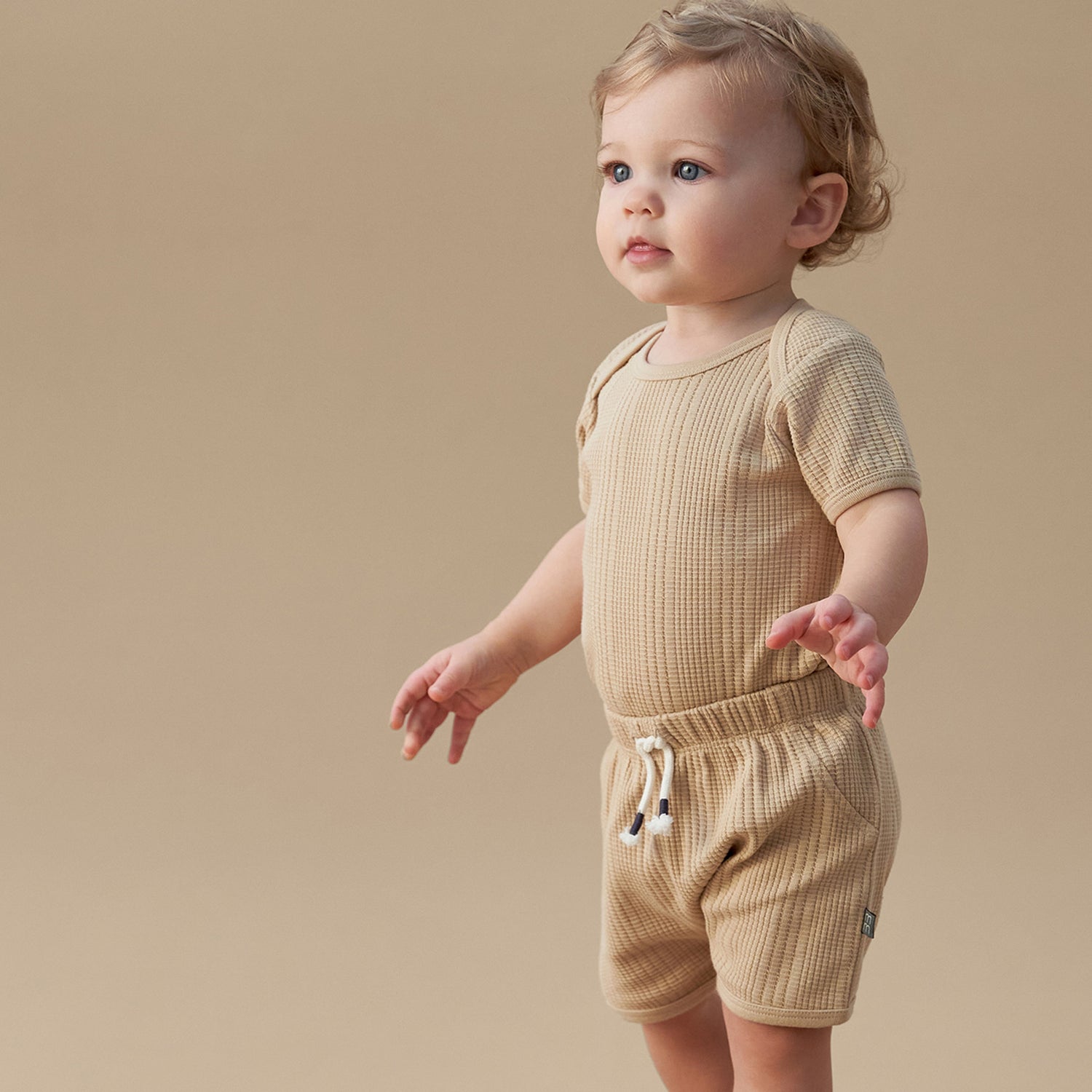 This baby romper is the perfect one-and-done outfit for all-day comfort, or it can be paired with matching shorts for a cute look! Made primarily from organic cotton with a touch of spandex, it offers just the right amount of stretch for the little one to move freely. The soft, breathable waffle fabric keeps them comfy and cool, while the hidden grippers at the leg openings help keep the romper in place as they wiggle and play. With an expandable lap shoulder neckline, parents can easily pull it down over their legs for hassle-free outfit changes, while snaps at the legs make diaper changes simple. It’s a quick and comfy go-to for busy days on the move! Our essentials have been independently certified with STANDARD 100 by OEKO-TEX so that there's no worry about harmful substances in little one’s wardrobe. Pack includes one romper.