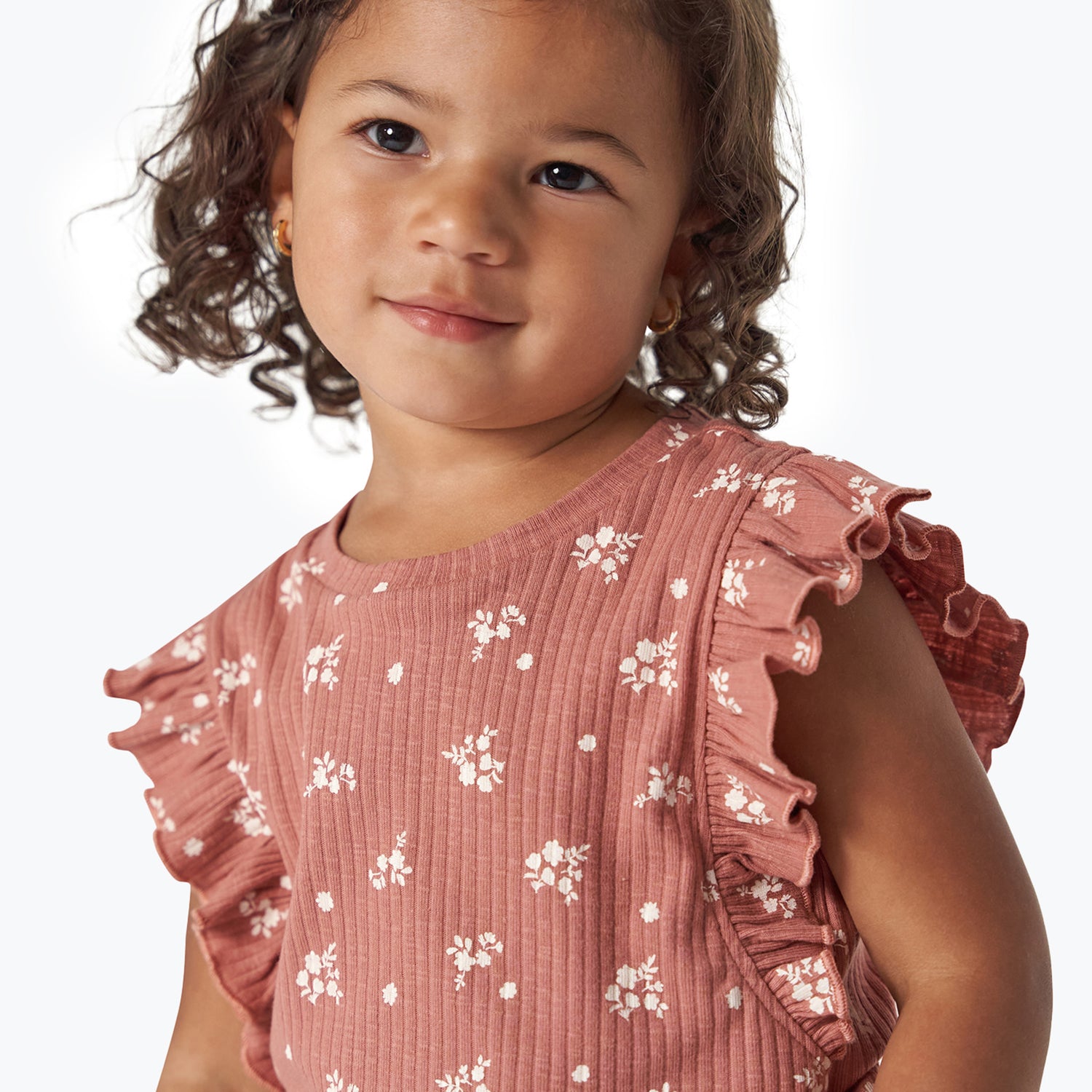 Infant & Toddler Girls Medium Rose Floral Ruffle Sleeveless Top-Gerber Childrenswear Wholesale
