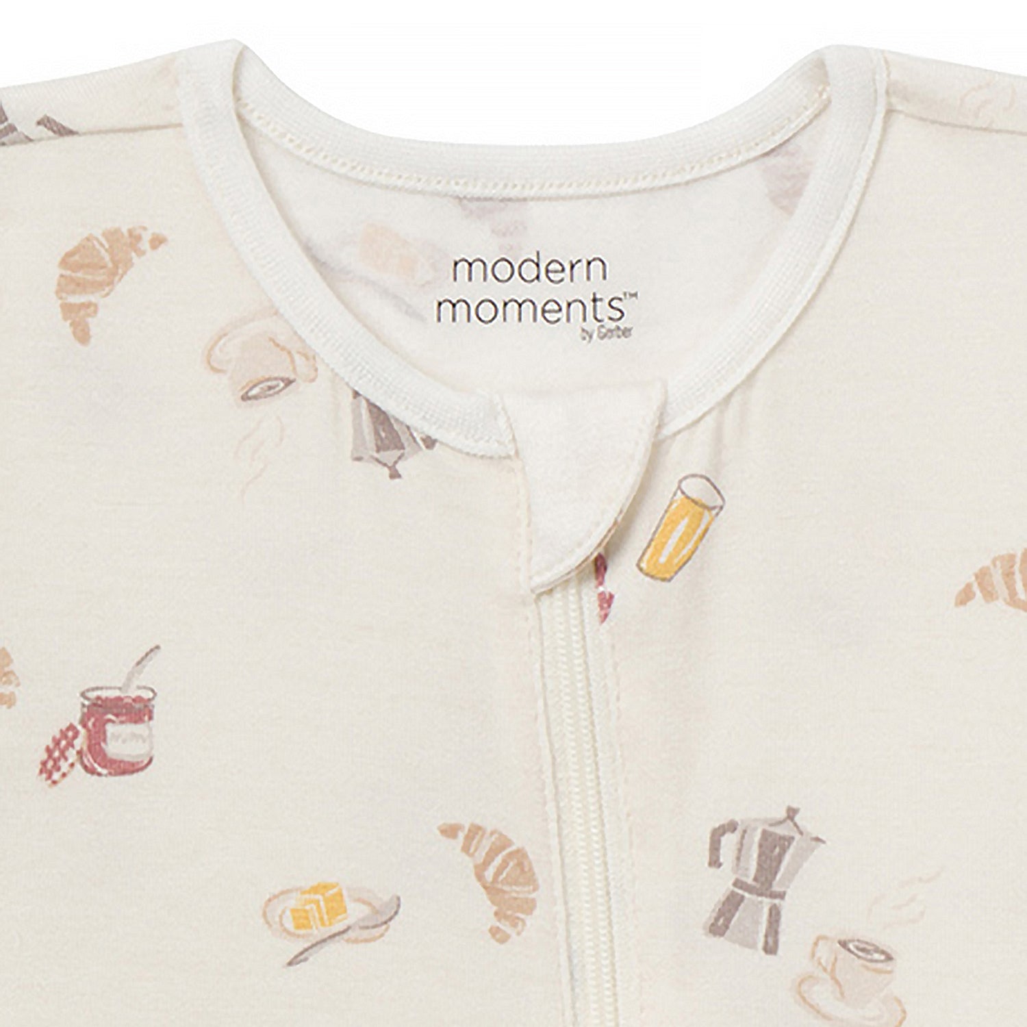 This elegant baby romper from modern moments™ by Gerber® is thoughtfully designed to provide both comfort and style for the little one. Made primarily from super soft viscose with a touch of spandex for a slight stretch, it offers a cozy, gentle fit. The full-length zipper, complete with a neckline protector, ensures easy changes while keeping baby snug. With cinched ankles for an extra cozy fit and a rounded neckline for all-day comfort, this romper also features mitten cuffs to keep tiny hands warm and protected, making it the perfect blend of chic design and everyday practicality. Our essentials have been independently certified with STANDARD 100 by OEKO-TEX® so that there's no worry about harmful substances in baby’s wardrobe. Includes one romper.