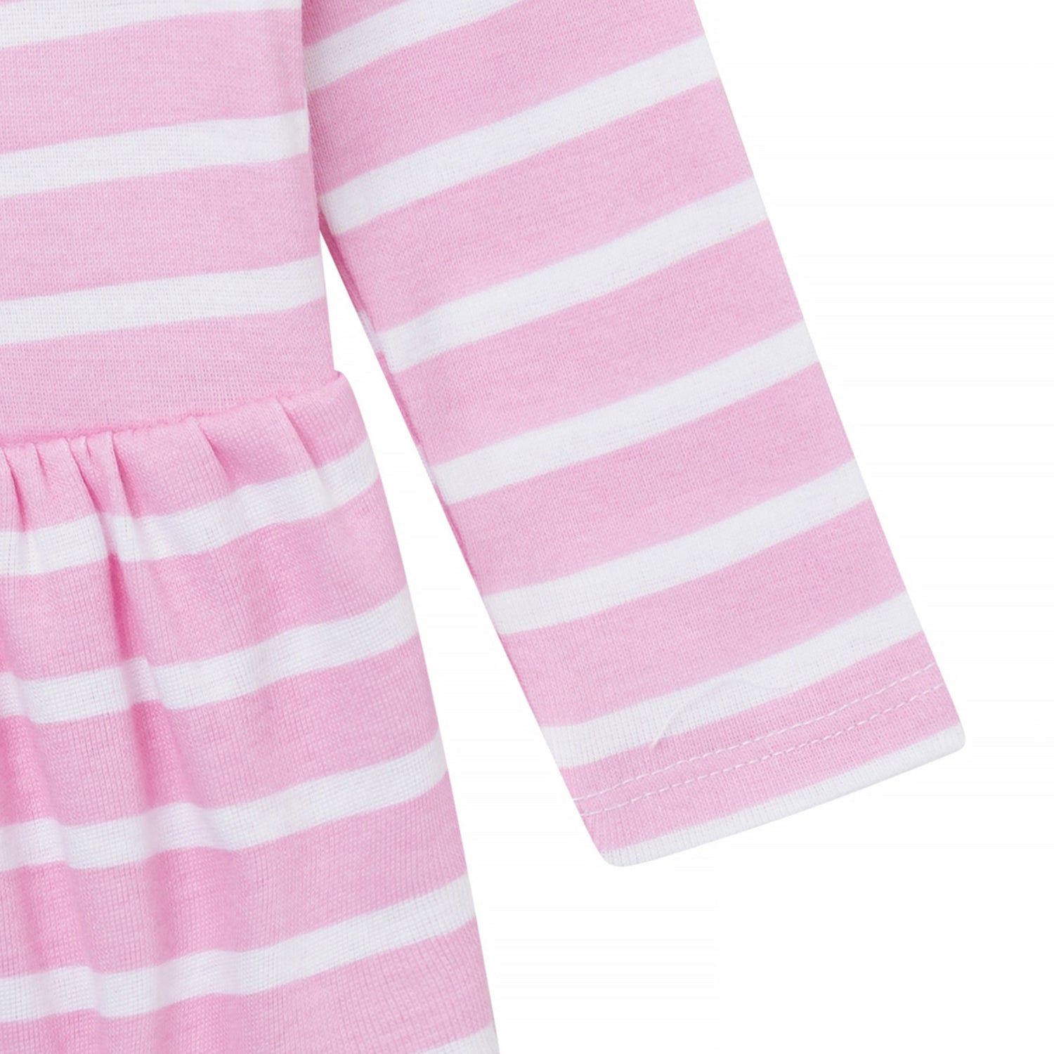 The little cutie deserves a dress that’s as sweet as she is! Made from soft, breathable 100% cotton, this long sleeve piece keeps her comfy all day long. The lap shoulder neckline means no over-the-head wrestling matches—it slides down for easy diaper changes. The ruffled hem provides twirl-worthy charm while the integrated diaper cover keeps everything looking adorable. Our essentials have been independently certified with STANDARD 100 by OEKO-TEX® so that there's no worry about harmful substances in baby’s wardrobe. Includes one dress.