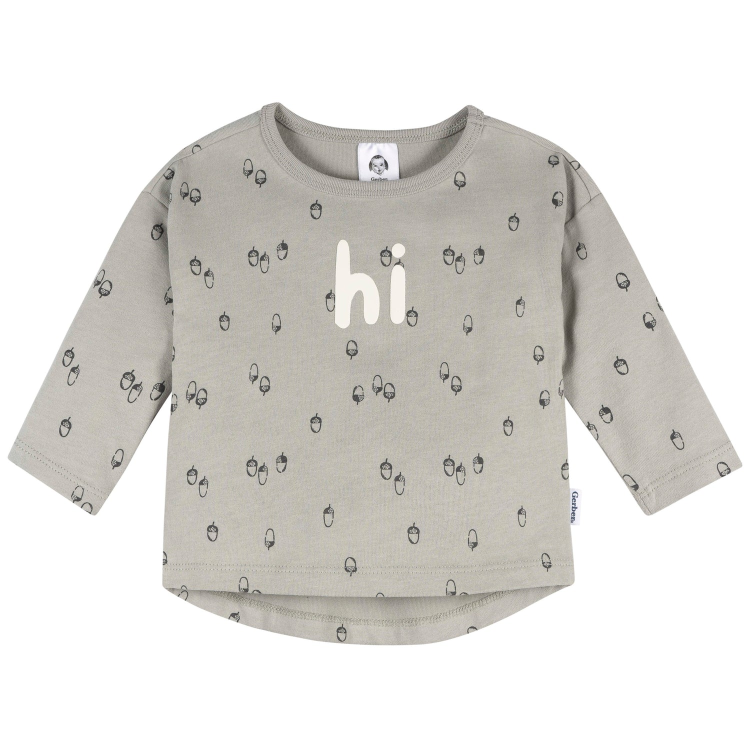 Say “hi” to baby’s new favorite outfit! This cheerful 2-piece set brings big smiles with a playful graphic and tiny all-over acorns across the top. Made from soft and cozy fabric for baby, this long-sleeved shirt is as comfy as it is cute. The dark gray joggers are made for all-day wear with a comfy waistband, ribbed cuffs, and a breathable cotton blend that stretches with every move. It’s a joyful little outfit that’s ready for playdates, picture days, and all the cuddles in between. Our essentials have been independently certified with STANDARD 100 by OEKO-TEX® so that there's no worry about harmful substances in little one’s wardrobe. Includes matching top and bottom.