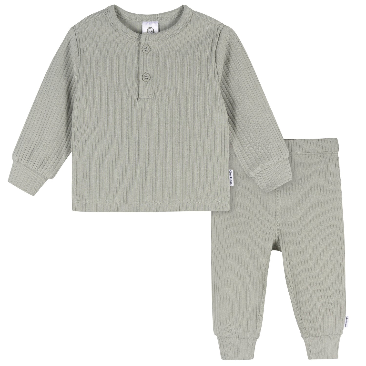 Fresh, fun, and full of comfort, this green 2-piece set is a breath of soft style for the little one’s wardrobe. The ribbed fabric is lightweight yet cozy, with just enough stretch to move with baby throughout the day. Designed with a sweet front placket and soft cuffs, the top pairs perfectly with the comfy pull-on pants, making this an easy go-to for busy mornings or lazy afternoons. Our essentials have been independently certified with STANDARD 100 by OEKO-TEX® so that there's no worry about harmful substances in little one’s wardrobe. Includes matching top and bottom.