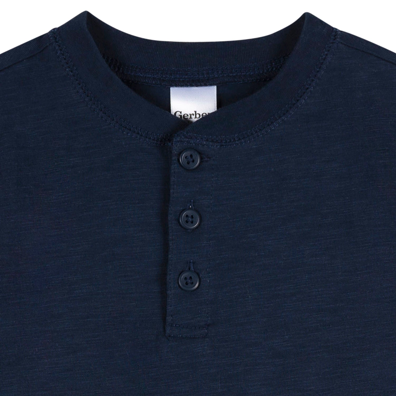 The little guy will be ready for all kinds of adventures with this 3-pack of long-sleeve tops! Designed for everyday play and cozy comfort, these shirts are made primarily from soft, breathable cotton that's gentle on his skin and perfect for layering. With earthy tones like green and brown plus a bold black option, this set brings rugged charm and cool versatility to his closet. From crawling to exploring, these tops move with him through every moment. Our essentials have been independently certified with STANDARD 100 by OEKO-TEX® so that there's no worry about harmful substances in the little one’s wardrobe. Pack includes three long-sleeved T-shirts.