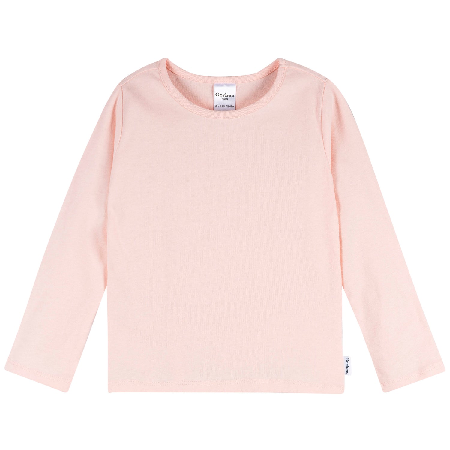 3-Pack Infant & Toddler Girls Green/Pink/Coral Long Sleeve Shirts-Gerber Childrenswear Wholesale