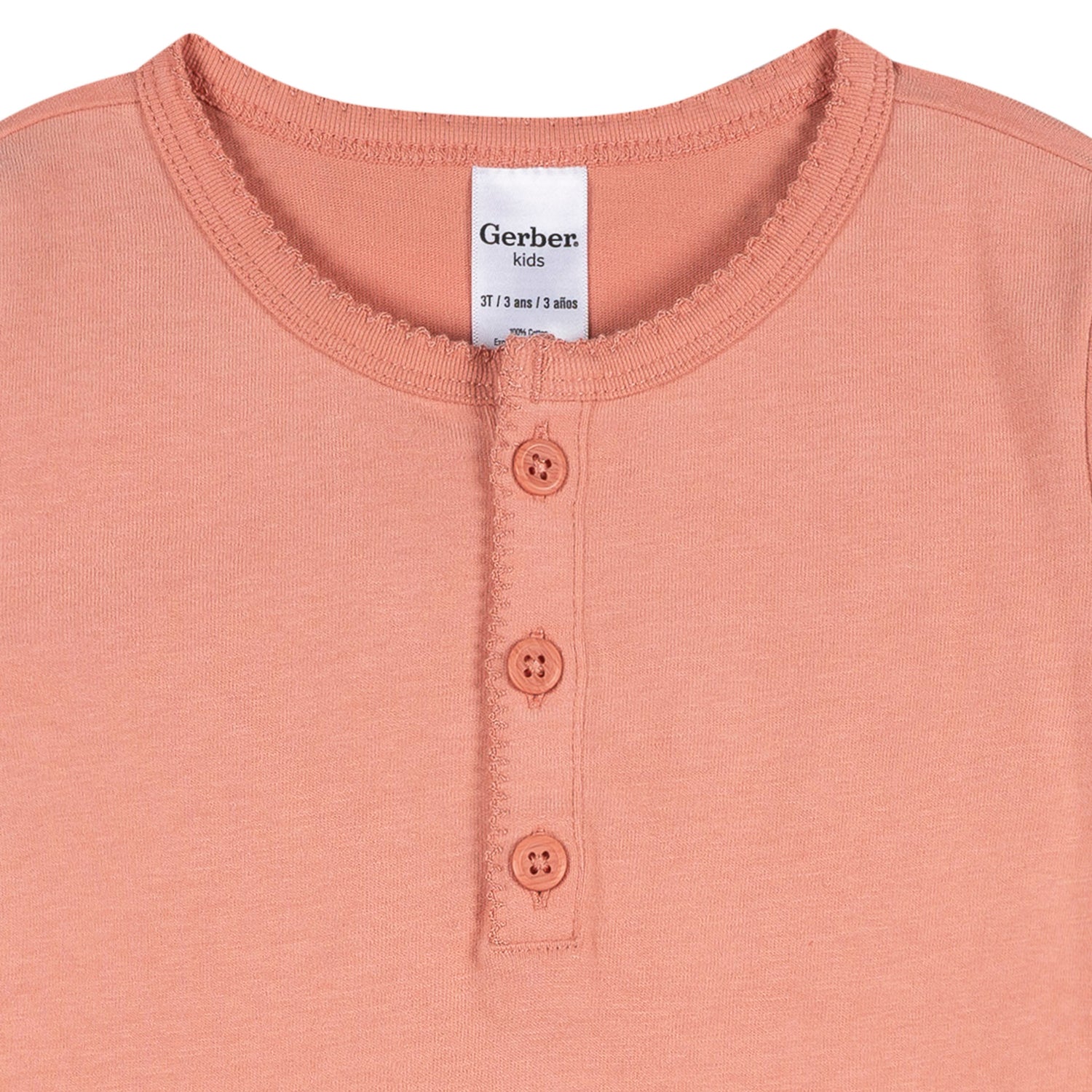 Sweet, stylish, and made to play! This 3-pack of long-sleeve tops brings together charming colors and soft textures to keep the little one cute and comfy all day long. From the soft peachy pinks to the rich forest green, each top has its own personality! With a mix of classic and feminine styles, this set is perfect for dressing up or down. Our essentials have been independently certified with STANDARD 100 by OEKO-TEX® so that there's no worry about harmful substances in the little one’s wardrobe. Pack includes three long-sleeved T-shirts.