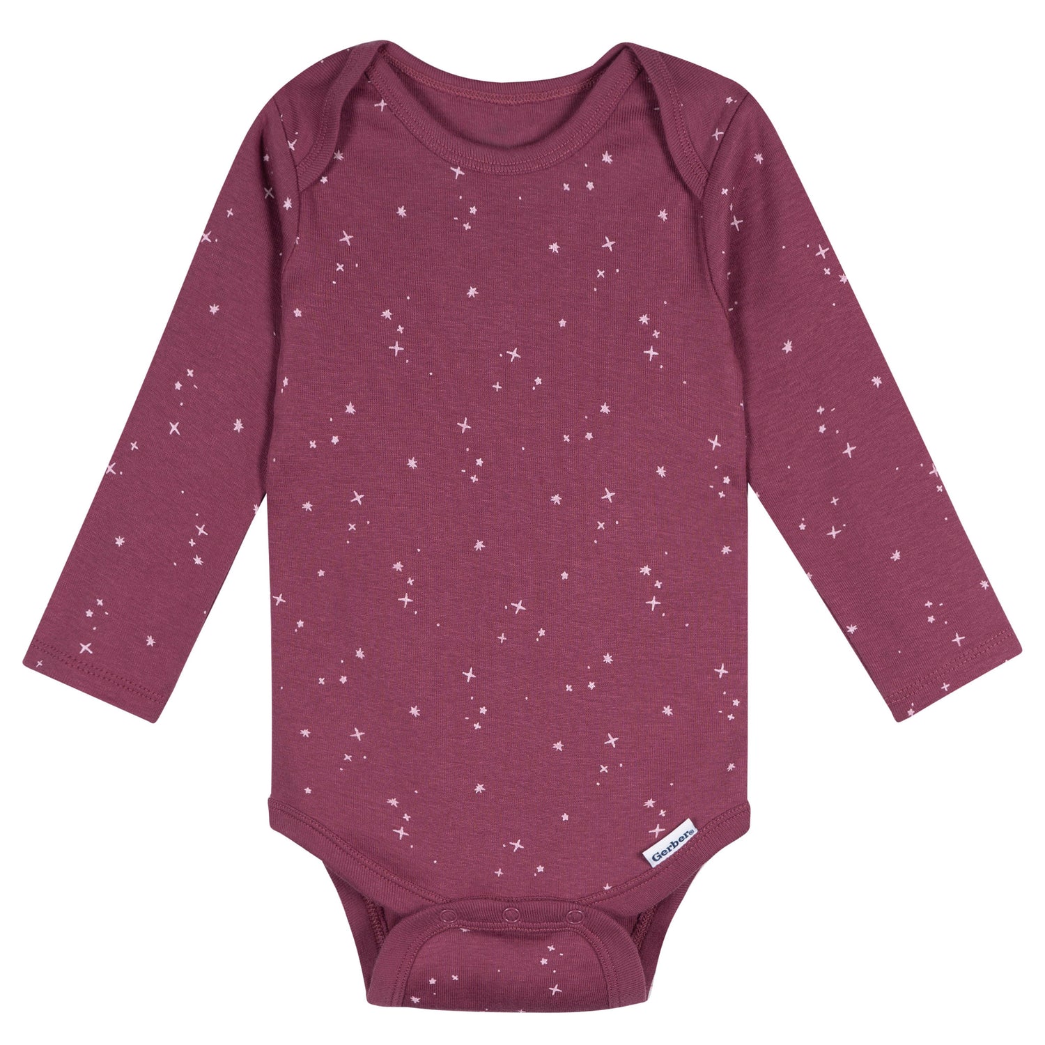 Stock up on all-day cozy with this 5-pack of long-sleeve bodysuits featuring the sweetest multi-color flower prints and soft solids! Made from 100% cotton, these bodysuits are oh-so-soft and gentle on baby’s delicate skin. The lap shoulder neckline makes outfit changes easy (because we all know messes happen), and the leg snaps keep diaper swaps quick and simple. With long sleeves for extra snuggly warmth, these bodysuits are perfect for layering or wearing solo. Cute, comfy, and totally essential—because one bodysuit is never enough! Our essentials have been independently certified with STANDARD 100 by OEKO-TEX® so that there's no worry about harmful substances in baby’s wardrobe. Pack includes five bodysuits.