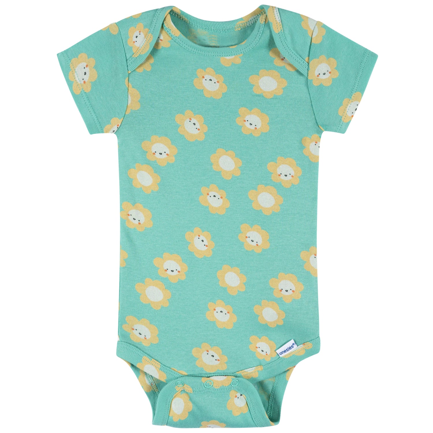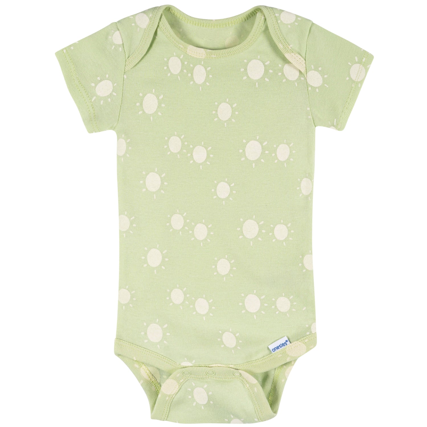 Keep baby cool and comfortable with this set of eight short sleeve Onesies® bodysuits! Crafted from 100% cotton, these bodysuits are soft and gentle on delicate skin, perfect for warm weather wear. The set features a mix of colors and charming screenprint designs, making it easy to create cute, coordinated outfits. With practical features like an expandable lap-shoulder neckline and simple leg snaps, changing baby is quick and hassle-free. Comfort-stretch ribbing at the neckline and leg holes ensures a snug yet flexible fit, providing all-day comfort. These versatile bodysuits are essential for any baby’s wardrobe and make a great baby shower gift. Our essentials have been independently certified with STANDARD 100 by OEKO-TEX® so that there's no worry about harmful substances in baby's wardrobe. Pack includes 8 bodysuits.